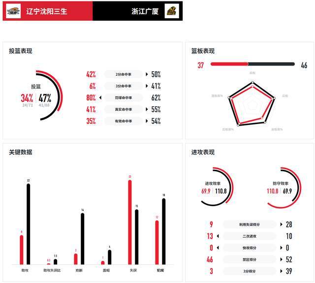 即便经过中场休息之后,辽宁队的进攻还是糟糕透顶,根本就无法取得进球。反观人家广厦队,真的是强大,单节又轰下24分,继续扩大领先优势,一度来到30+。领先那么多,广厦队还是没有手软,最终,以103-65大胜辽宁队38分。