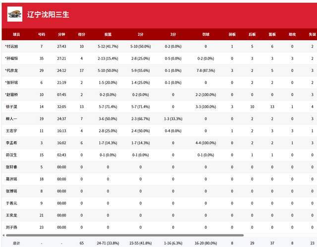 辽宁U19男篮这场比赛3人得分上双,代彦龙10投5中,拿到17分5篮板。徐子淏7投5中,拿到13分13篮板。付远旭12投5中,拿到10分6篮板。