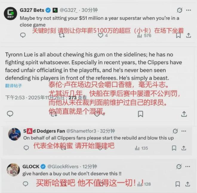 快船球迷对此无比深感失望,不断请求重建,并由于心疼哈登希望能恢复他的自由身,要么将其送去一支真正的争冠队伍,如下: