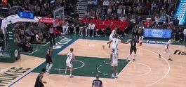 第三节比赛开拓者依旧保持着进攻的火力,但是雄鹿队的球员像是被对手刺激到了一般,也开始疯狂互飙三分球。