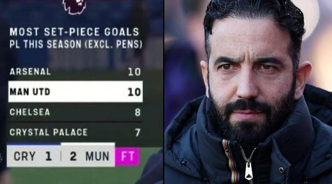 在今天晚上进行的英超第13轮比赛中,曼联客场2-1击败水晶宫,其中曼联的两个进球都是在定位球进攻中打进。本赛季到目前为止,曼联已经在英超当中打进了10个定位球进球(不计算点球),追平阿森纳,并列英超定位球进球数第一名,乔-科尔呼吁给阿莫林“记上一功”。
