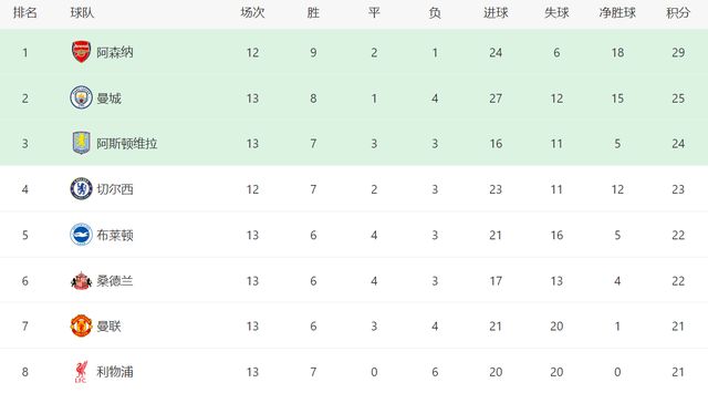 英超第13轮一场比赛,阿斯顿维拉主场1-0战胜狼队,最近8轮联赛取得7胜1负,唯独输给了利物浦,积分榜排名从第18位攀升第3位,稳居前四。