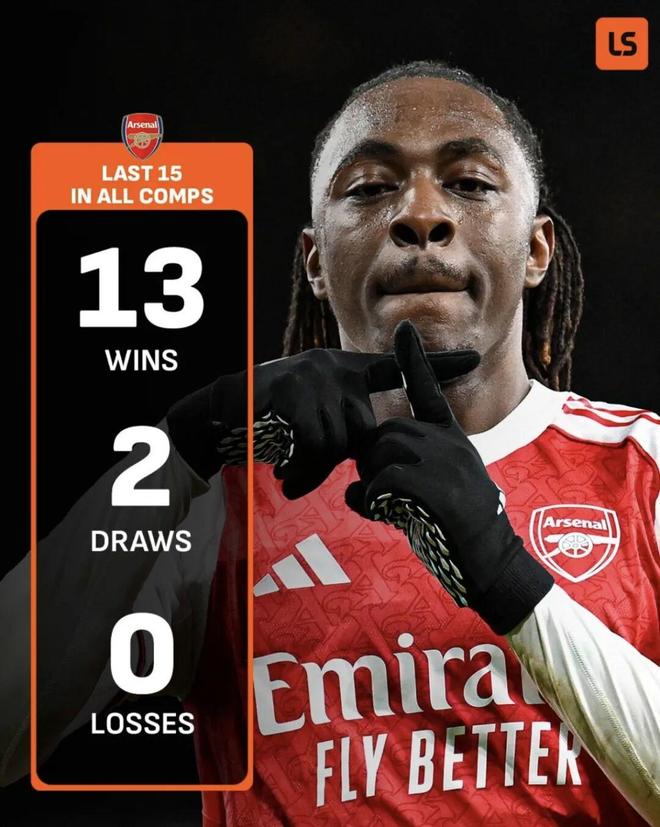 最终,枪手主场4-1大胜热刺,各项赛事15场保持不败。