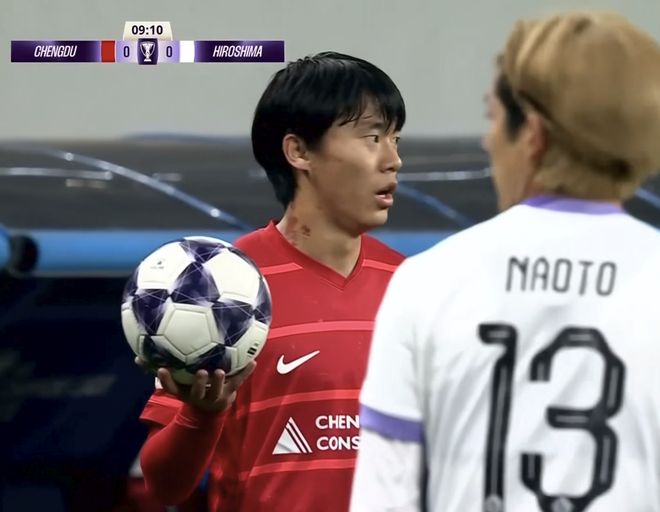 在蓉城与广岛三箭的比赛中,两队你来我往,踢得很激烈,上半场都有机会改写比分,但没有出现进球。下半场中蓉城率先打破比赛平衡,第54分钟,周定洋制造点球后,费利佩主罚将球打进。但是在第63分钟蓉城被扳平比分,加藤陆次数禁区内包抄射门取得进球,1-1!之后的比赛两队互有攻守,最后战成平局。蓉城在亚冠中2连平,积分暂时反超了申花。