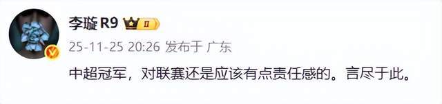 中超冠军,对联赛还是应该有点责任感的。言尽于此。