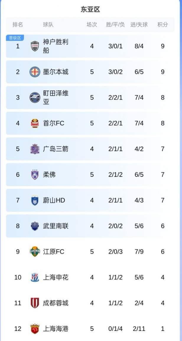 可惜,他们依旧未能做到!在自己家门口,愣是被首尔FC踢了一个3-1,输得十分彻底。随着上海海港1-3不敌首尔FC,亚冠精英联赛东亚区的积分榜也随之更新了。看看上海海港的排名,这个中超冠军真是叫人汗颜了。